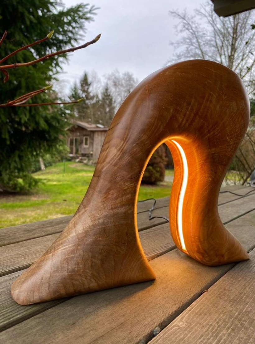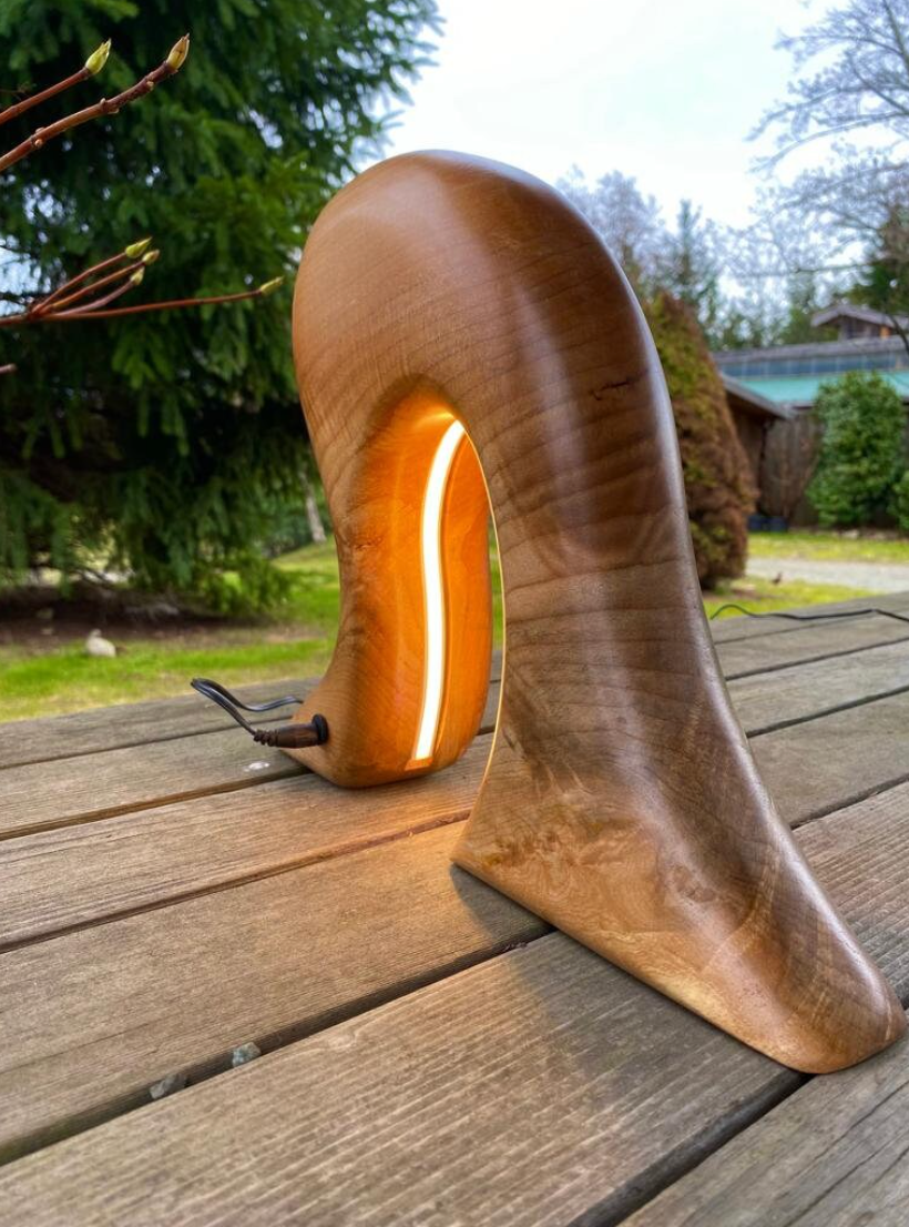 Beautiful and unique, our handcrafted wooden lamp creates a gorgeous ambience for a living room, bedside table or nursery.